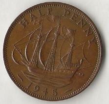 GEORGE 6TH HALFPENNY 1945 NICE CIRC