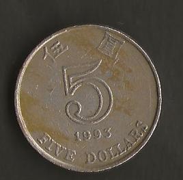 HONGKONG FIVE DOLLARS 1993 CIRC