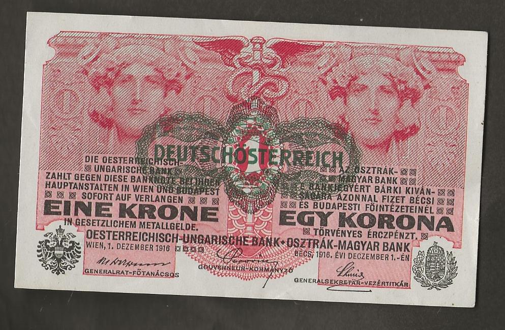 AUSTRIA /HUNGARY ONE KRONE 1916 CRISP AND CLEAN Year: 1916Condition: CRISP AND CLEAN VERY LIGHT CREASES SKU: 35332Price: £2.00£2.00