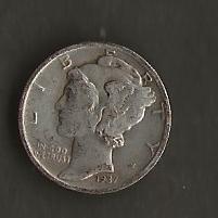 UNITED STATES SILVER TEN CENTS 1937 CIRC