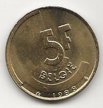 BELGIUM (BELGIE) FIVE FRANCS 1988 VFINE