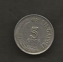SINGAPORE FIVE CENTS 1971 CIRC