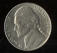 UNITED STATES FIVE CENTS 1989D FINE