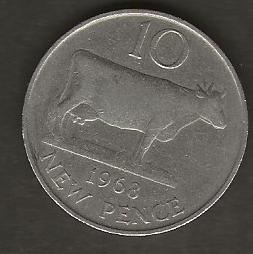 GUERNSEY TEN PENCE 1968 CIRC