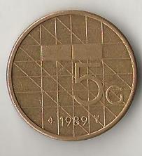 NETHERLANDS FIVE GULDEN 1989 CIRC