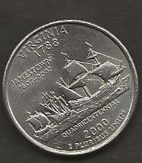 UNITED STATES 25 CENTS 2000P NICE CIRC Year: 2000Condition: NICE CIRCULATEDP MINTMARK VIRGINIA SKU: 35133Price: £0.25£0.25