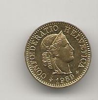 SWISS FIVE RAPPEN 1989 NICE CIRC