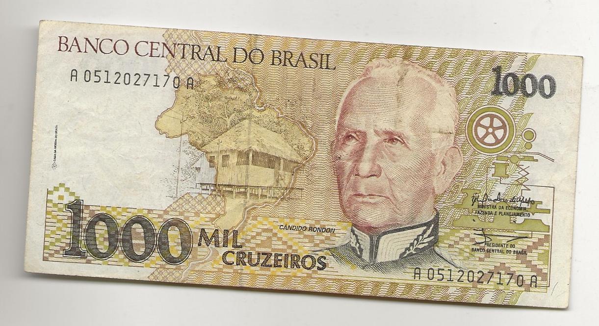 BRASIL 1000 CRUZEIROS CIRC Year: 0Condition: CIRCULATEDFOLDS /CREASES NO TEARS OR STAINS SKU: 35191Price: £0.50£0.50
