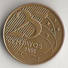 BRASIL 25 CENTS 1998 FINEPLUS