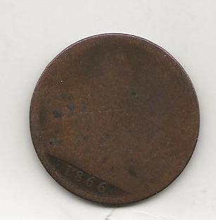 VICTORIA PENNY 1866 VERY WORN