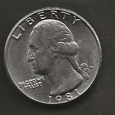 UNITED STATES 25 CENTS 1981D FINE