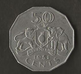 SWAZILAND FIFTY CENTS 1981 FINE