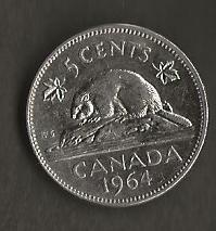 CANADA FIVE CENTS 1964 CIRC