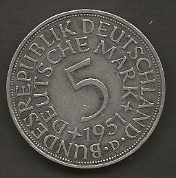 GERMAN SILVER FIVE MARKS 1951D CIRC Year: 1951Condition: CIRCULATEDD MINTMARK SKU: 36422Price: £12.50£12.50